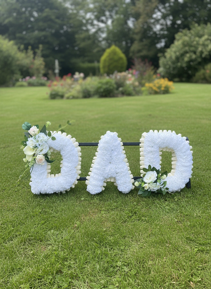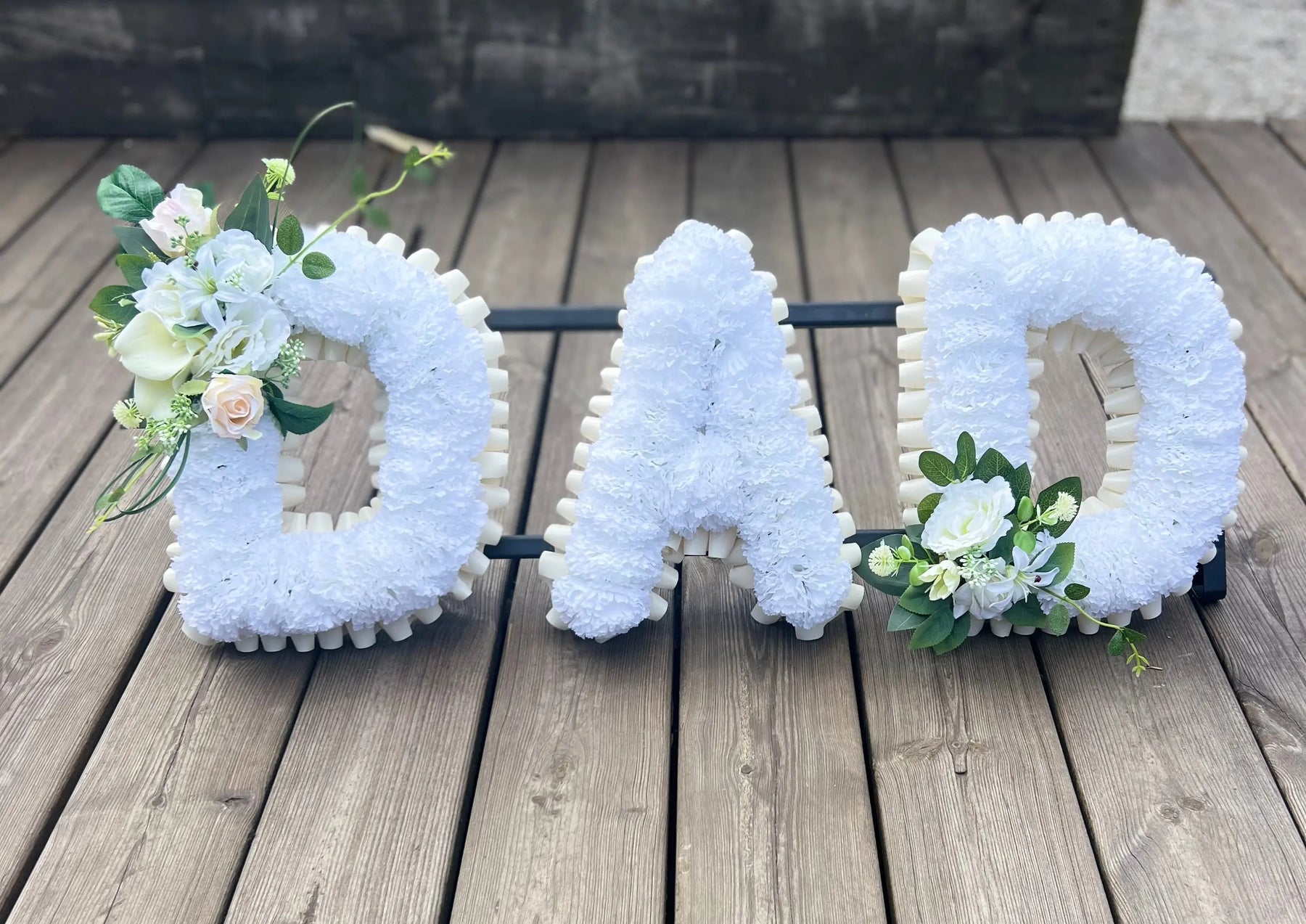 Dad Artificial White And Ivory Artificial Flower Letter Tribute