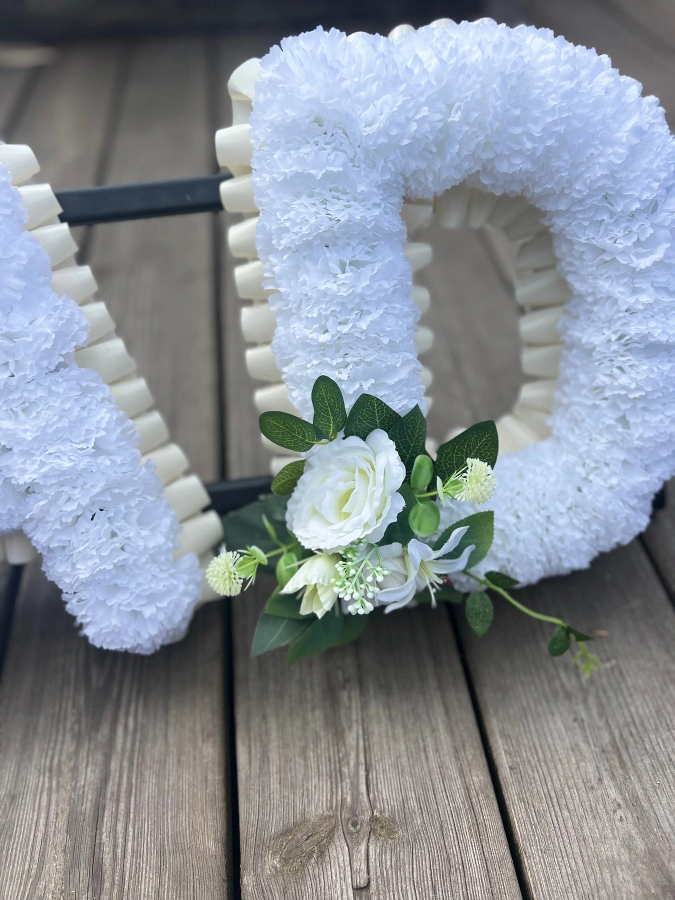 We can customise this tribute with any name, word, or number. Ribbon colors and flower selections can also be tailored to your preferences—please contact us for details.