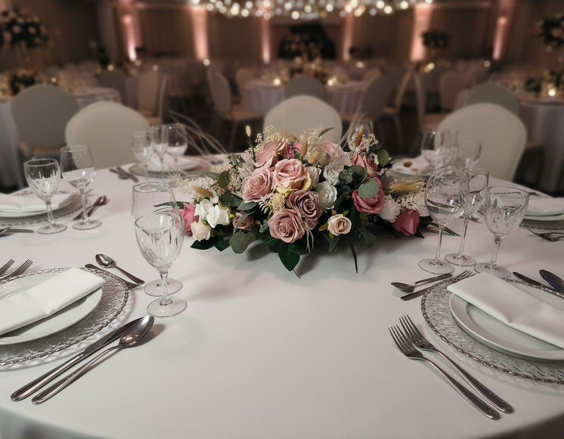 Flowers are a key component of any table arrangement. For a pink and white theme, opt for fresh blooms such as roses, peonies, and lilies. These flowers not only add beauty but also fragrance, enhancing the sensory experience at your event. Arrange your flowers at varying heights to create visual interest, and consider adding greenery for contrast. Therefore, your table arrangement will be both visually stunning and engaging, making it the focal point of your event.